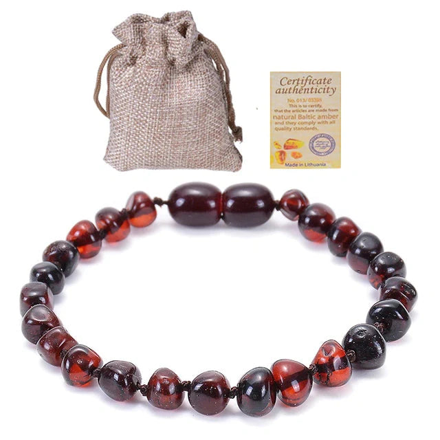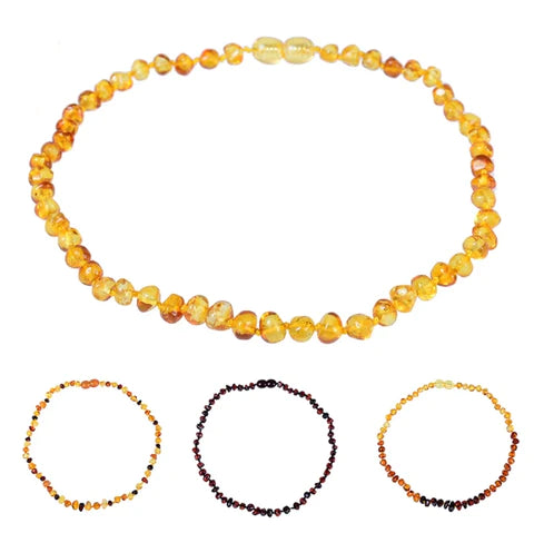 O Âmbar é formado de maneira orgânica, a partir da resina das árvores locais da região dos Países Bálticos. Ele possui uma substância chamada ácido succínico, um composto químico que fortalece o sistema imunológico, estimula o sistema nervoso e melhora a atividade metabólica. Por isso, o Âmbar Báltico atua como calmante, analgésico e anti-inflamatório natural.
