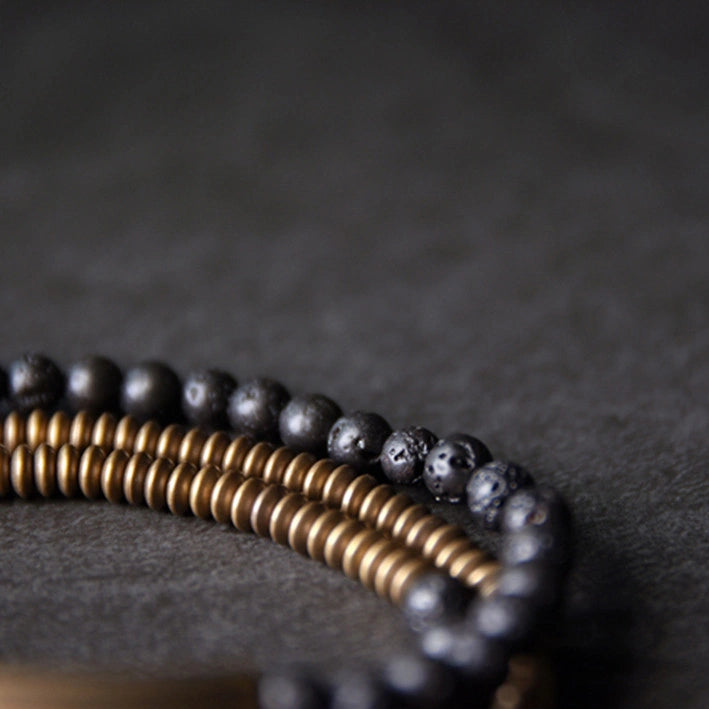 01 Bracelete-Colar em Cobre e Pedras Vulcânicas