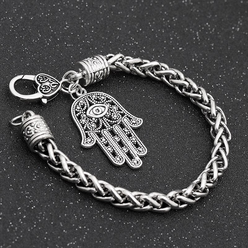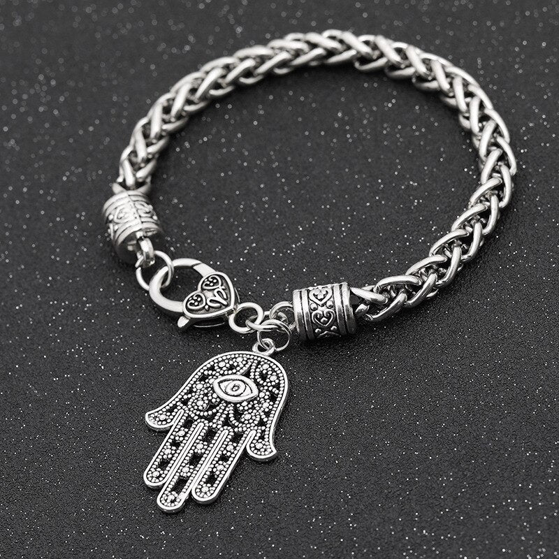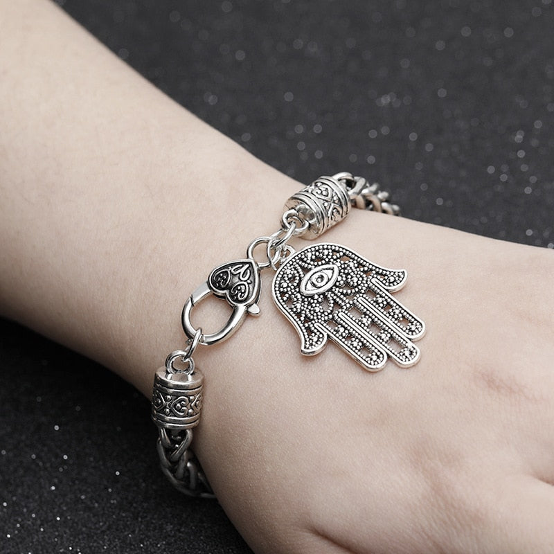 01 Bracelete em Prata Envelhecida com Pingente Hamsa