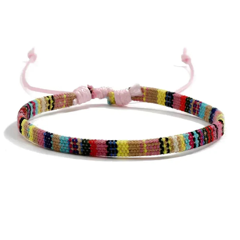Cada pulseira é única, com cores vibrantes inspiradas nos tecidos típicos tibetanos. Feitas em linha de algodão com acabamento manual, elas são resistentes, leves e confortáveis para o uso diário.