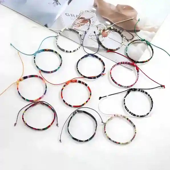 - 12 pulseiras tibetanas artesanais em linha de algodão (cores variadas e sortidas)