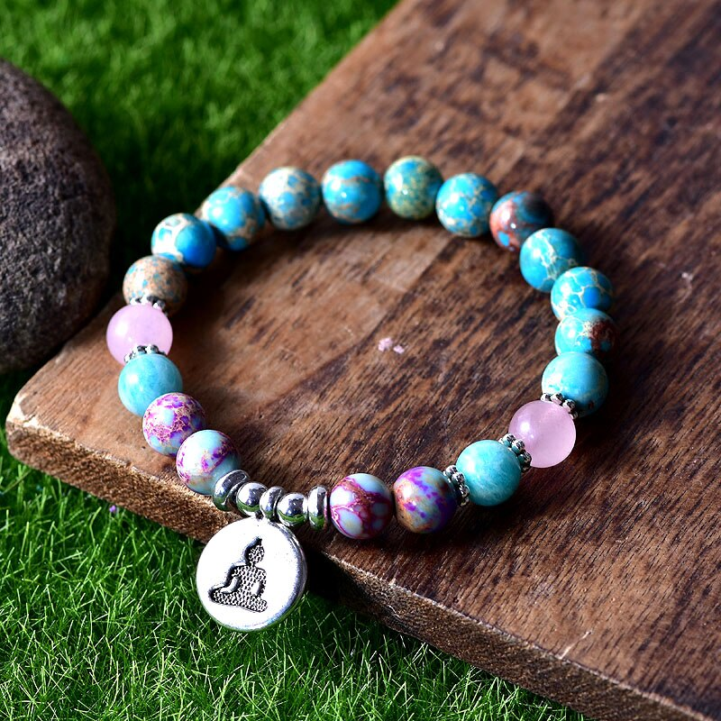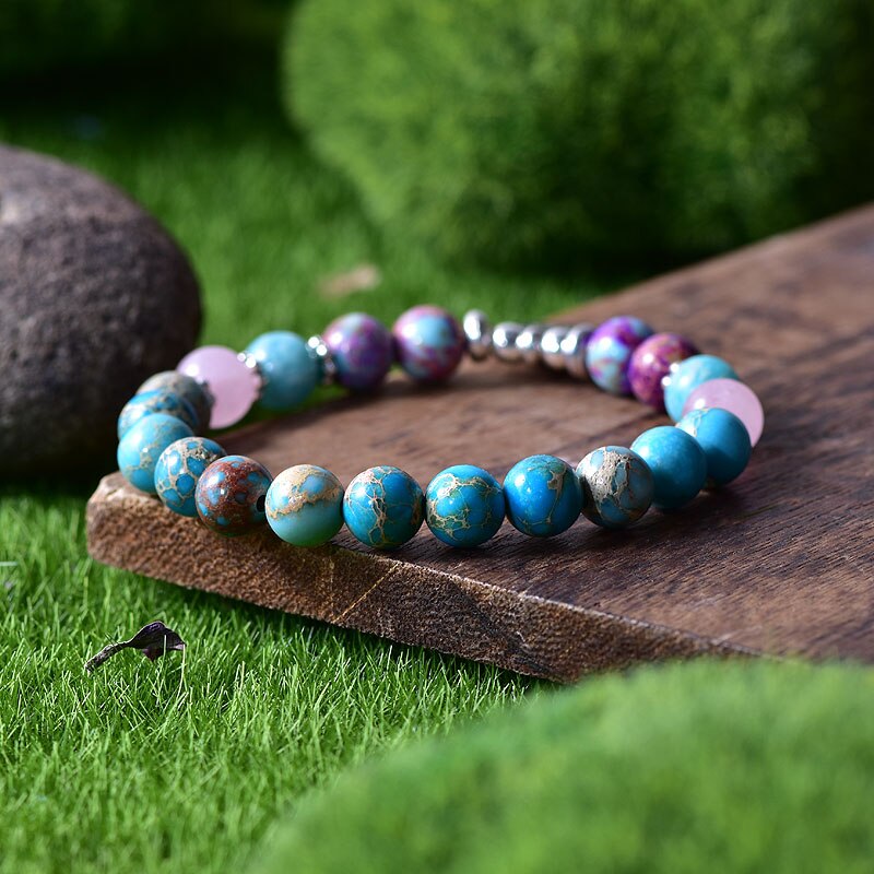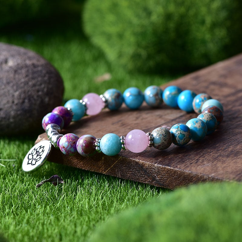Bracelete Om em Pedras Naturais Quartzo Rosa, Amazonita, Jaspe e Turquesa