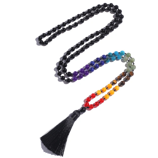Japamala 7 Chakras com 108 Contas em Pedras Naturais Onix
