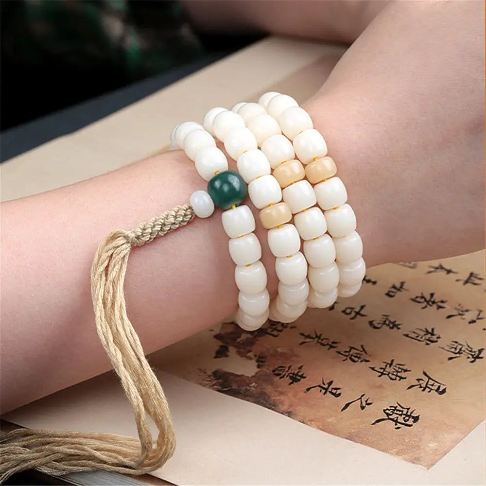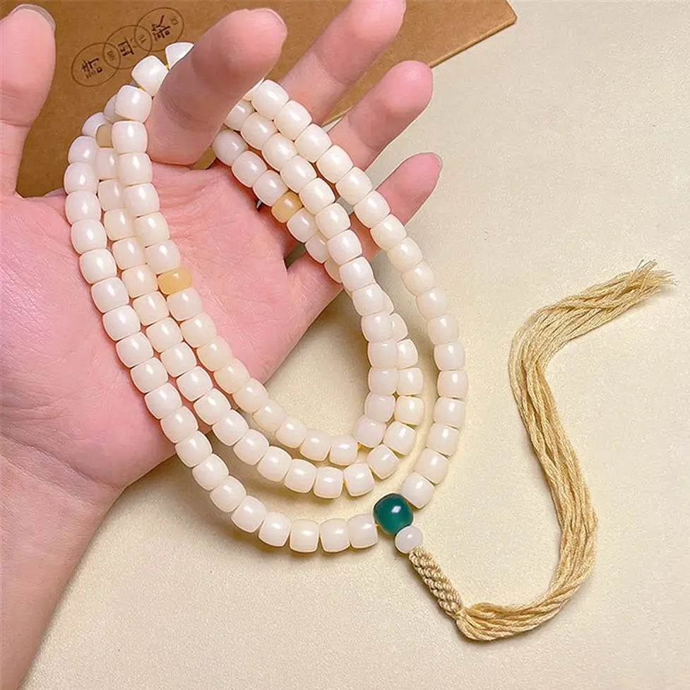 Desperte sua espiritualidade com esse Japamala artesanal, completamente confeccionado em Semente de Bodhi Branca natural. Cada conta é uma jornada de tranquilidade e elevação espiritual.