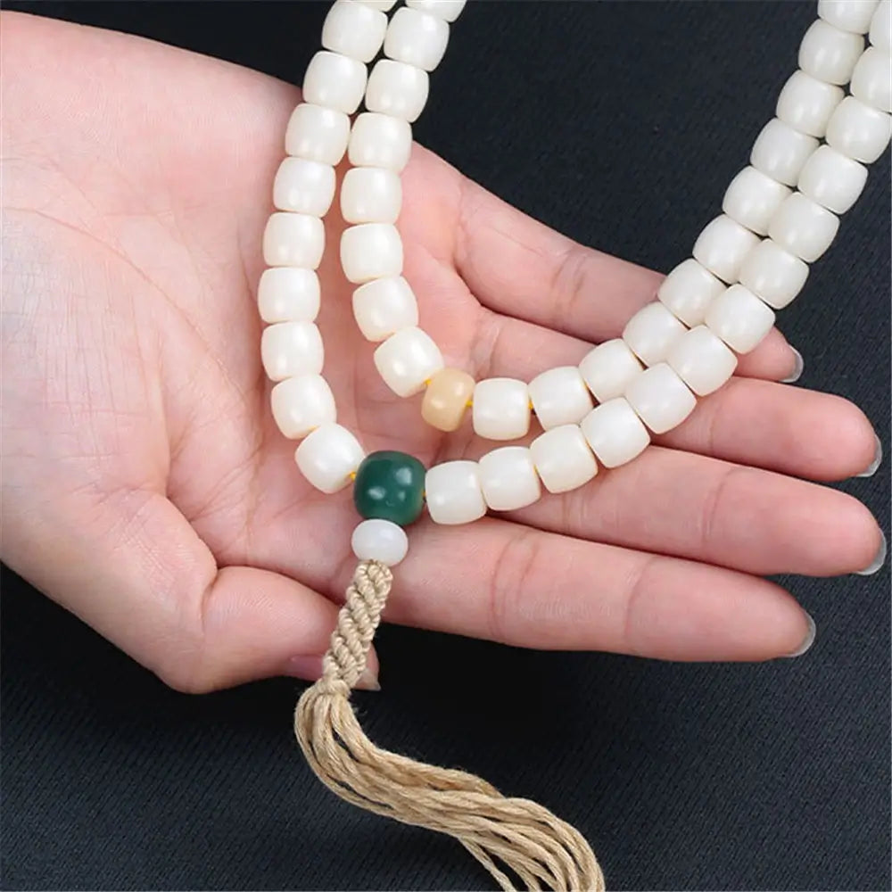 01 Japamala com 108 contas em Semente de Bodhi Branco polido