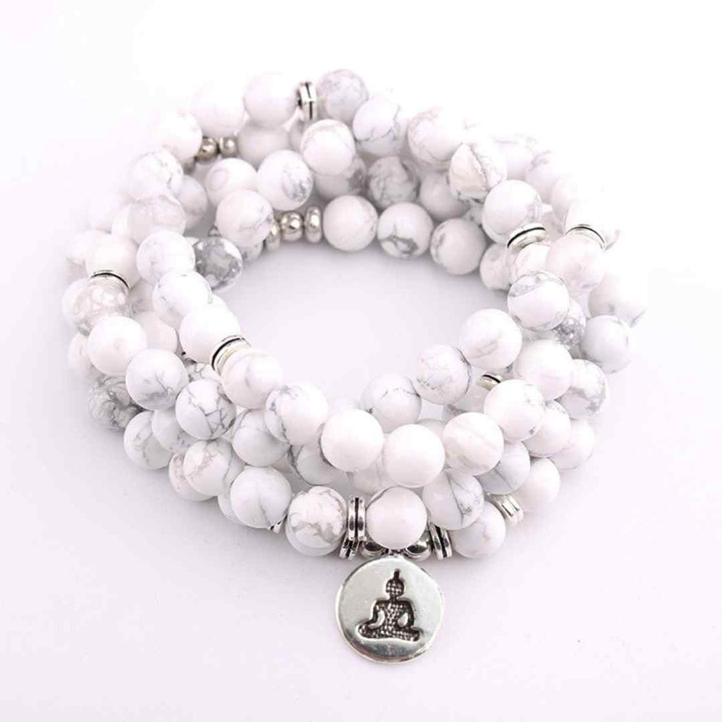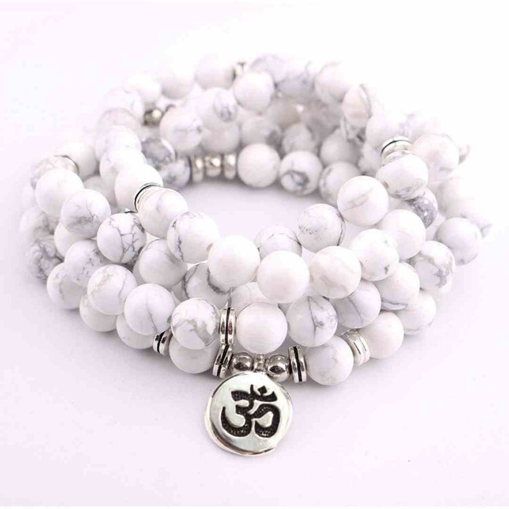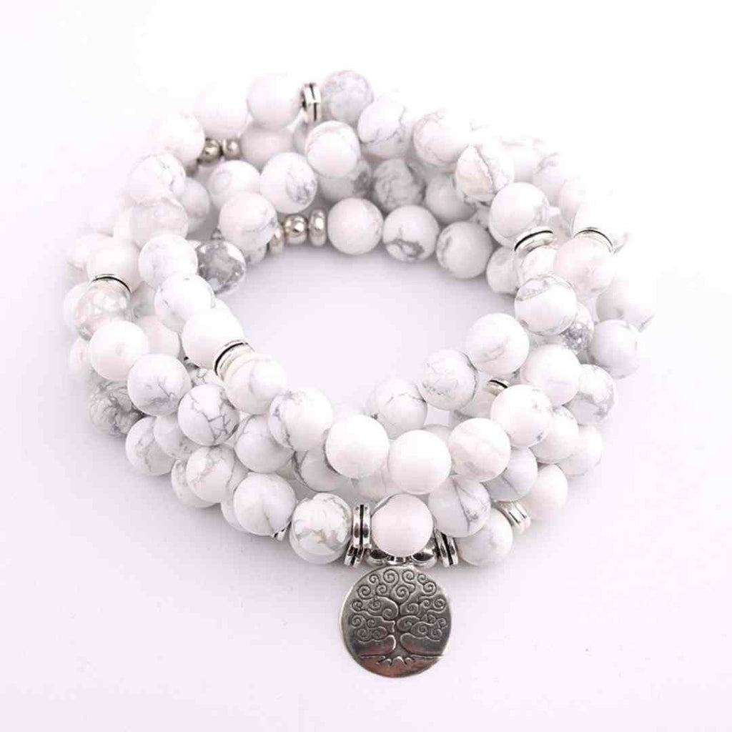 01 Japamala em Howlita Natural, Pingente Árvore da Vida, Buda, Lótus ou Om