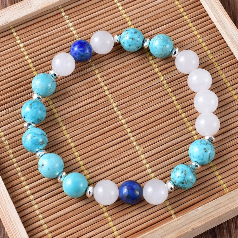 Material: Contas em Pedras naturais Turquesa, Jade Branco e Lápis Lazúli
