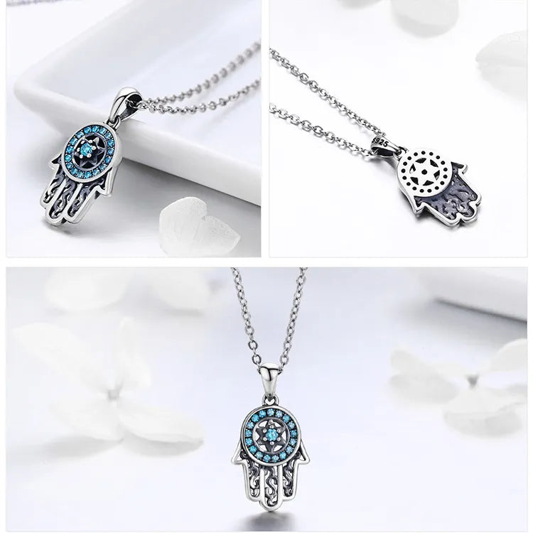 Pingente Hamsa Mão de Fátima em Prata 925 Autêntica