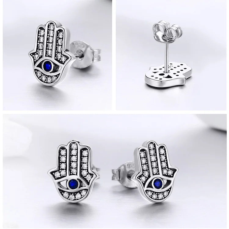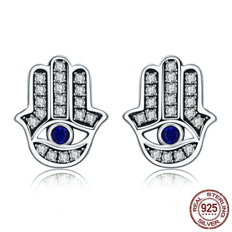 Brinco Hamsa Mão de Fátima em Prata 925 Autêntica