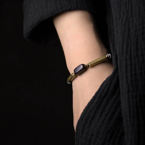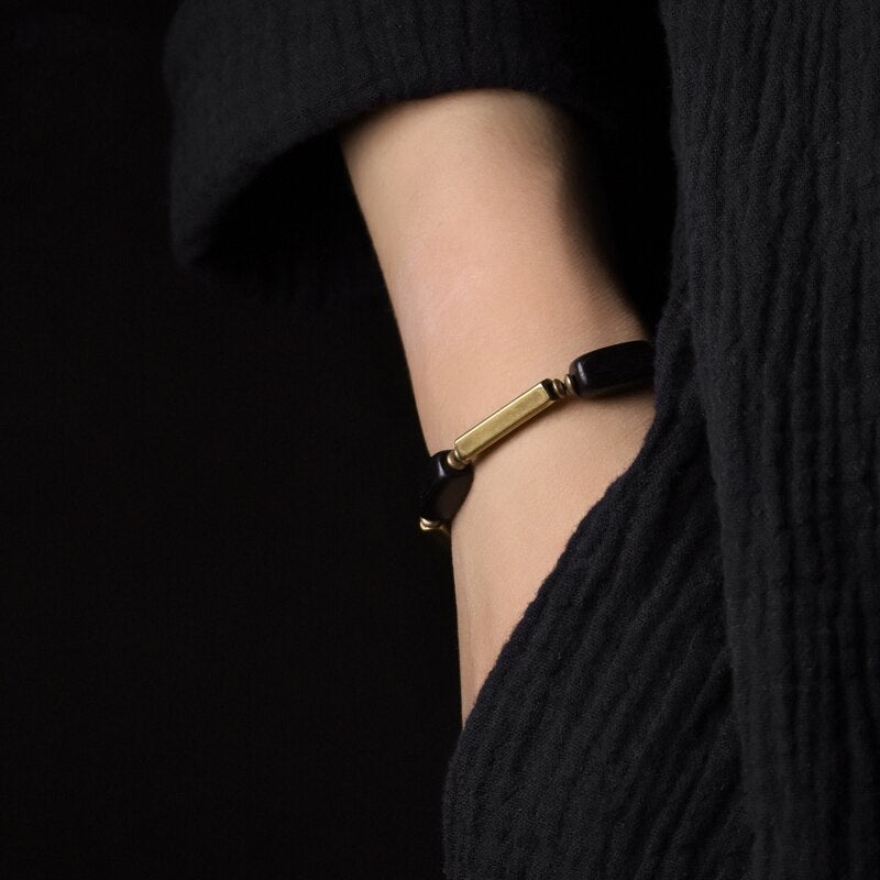 Este delicado bracelete é feito à mão, artesanalmente para você, com muito cuidado e carinho. Dois elementos, ébano e metal cobre, uma combinação que cria um contraste muito bonito e único.